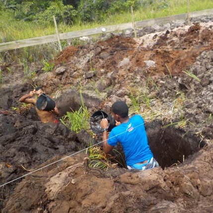 First things first : les fondations Publié le 12 novembre 2015 dans Construction Un travail manuel pour préparer les fondations des pilotis. La brouette apporte remblai pour le drainage :